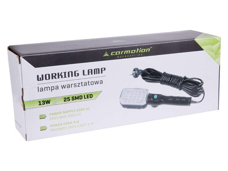 Lampa de iluminare LED de 25 SMD-uri este perfecta pentru ateliere, service-uri, garaje si campinguri. Echipat cu un comutator si un cablu de alimentare lung de 9 metri. Lampa are un suport magnetic si un carlig rotativ.