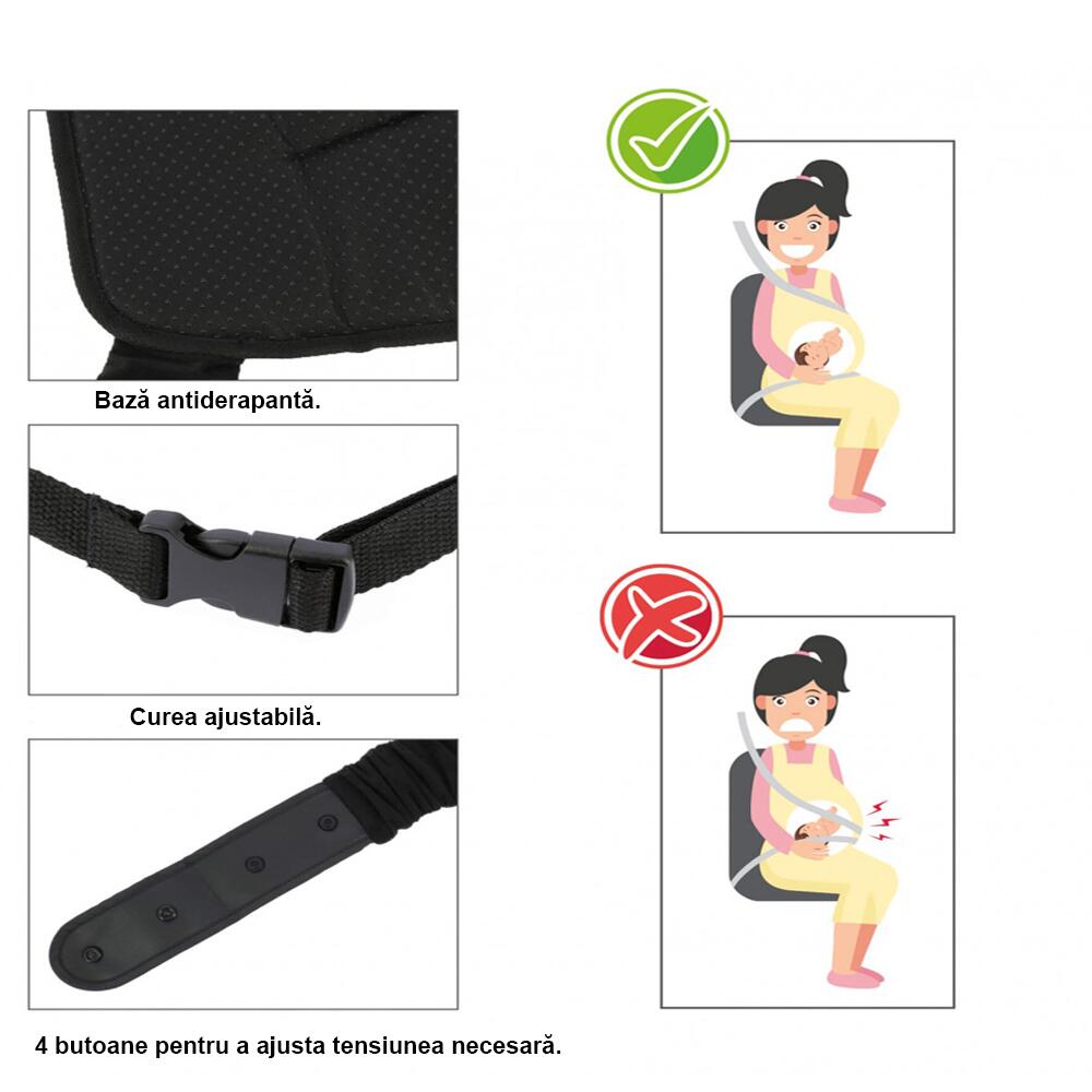 Acest suport pentru centura de siguranta, destinat gravidelor este proiectat pentru a oferi un confort si o siguranta maxime unei femei insarcinate;