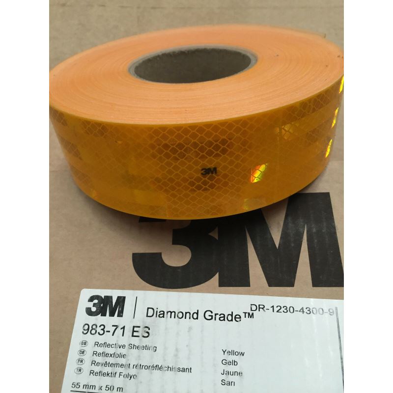 -Banda 3M™ Diamond Grade™Seria 983 cu tehnologie inovativa, cu constructie microprismatica, este o banda in 3 straturi, groasa, rigida. Are proprietati reflectorizante excelente, cu unghiuri de reflexie largi si culori stridente si luminoase.