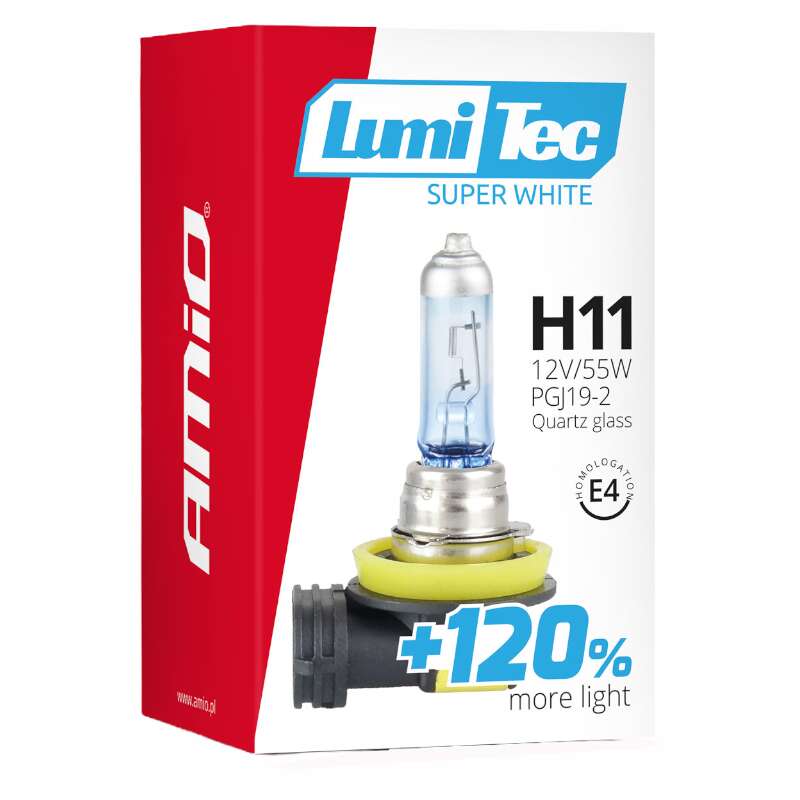 Bec H11 12V, 55W, extra 120% putere, super alb, LumiTec Super White 02139 Amio.