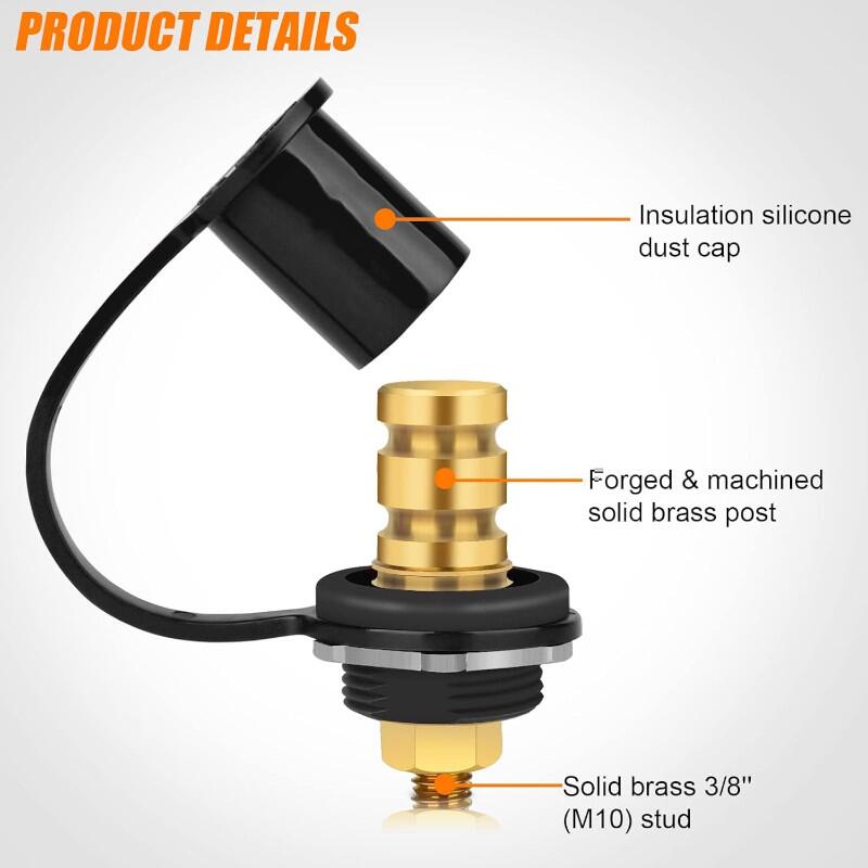 Dimensiune standard: Conectorul are o gaura pentru surub de 3/8” (M10), asigurand compatibilitatea cu o gama larga de baterii si dispozitive.