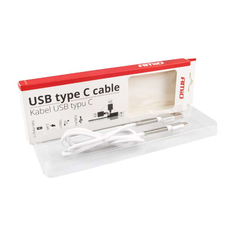 Cablu incarcator USB, Tip C, alb cu protectie anti-rupere, FullLink 2.4A, 01433 Amio