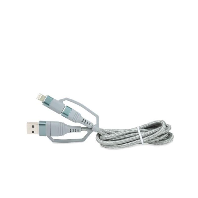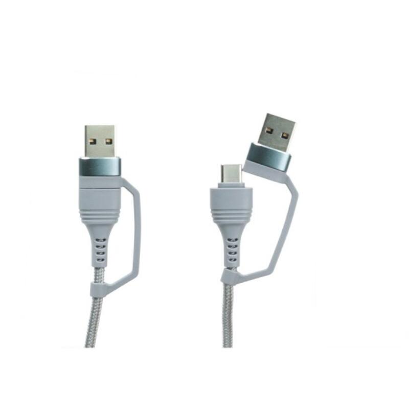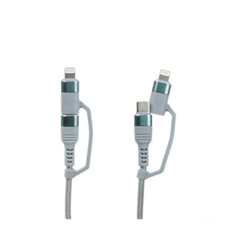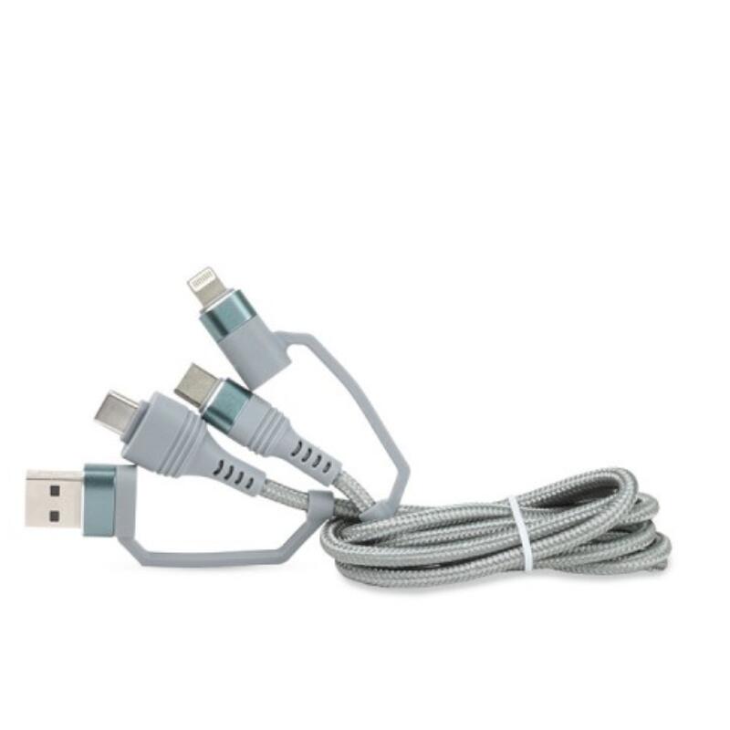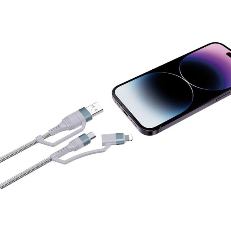 Cablul multifuncțional 4 în 1 Amax 6117 este conceput pentru utilizatori care au mai multe dispozitive și tipuri de conectori. Permite încărcare rapidă până la 100W și transfer de date, fiind acoperit cu împletitură din nylon pentru durabilitate și flexibilitate ridicată.