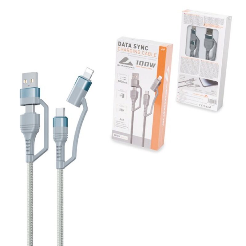 Cablu incarcator 4 in 1 multifunctional, USB TipC - 100W, cablu 1m, Automax 6117