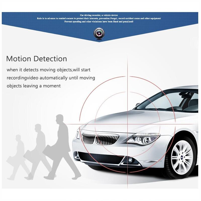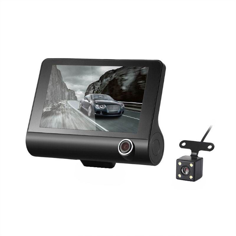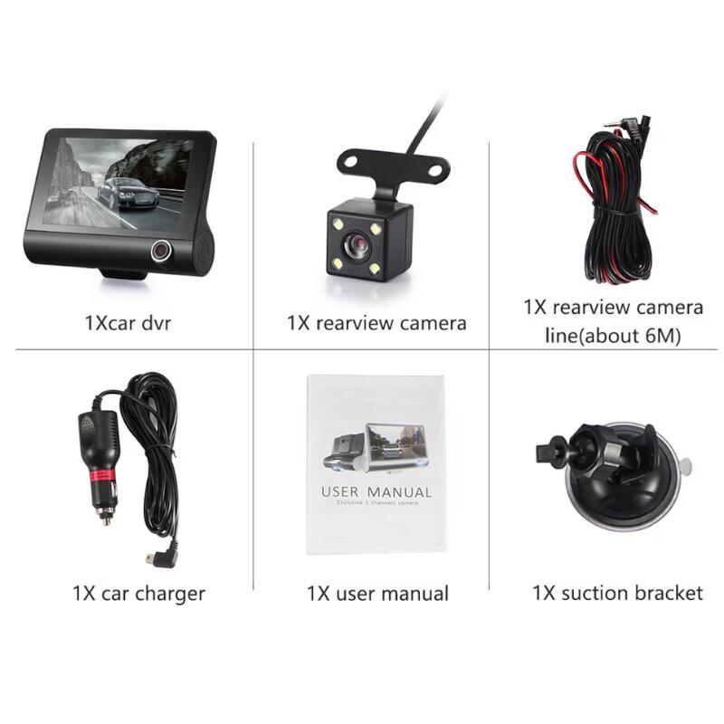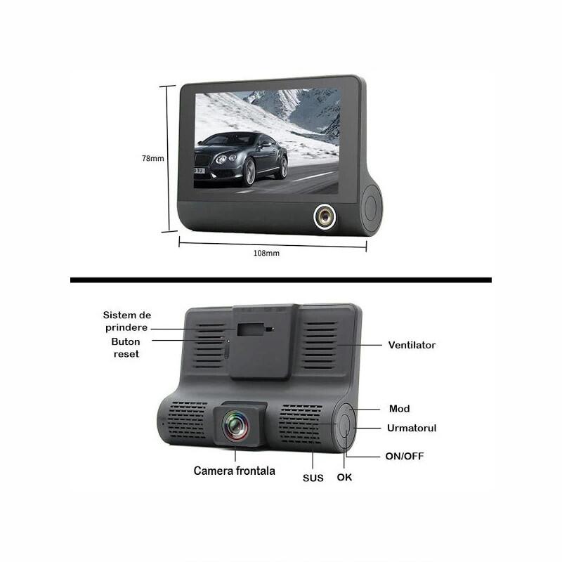Ecranul este de 4 inch, adica poti vedea ce-ai filmat chiar pe camera in asociere cu functia playback de care dispune. Dispune de lentila rotativa pe verticala, compresie video MOV si zoom digital 4x. Filmarile se salveaza in bucla pe un card microSD de pana la 32GB. Are microfon, difuzor si multe functii practice - Functie playback, Senzor de miscare, senzor de impact, monitorizare parcare, WDR. Are port USB si AV asa incat poti sa vezi ce-ai filmat la calculator sau laptop.