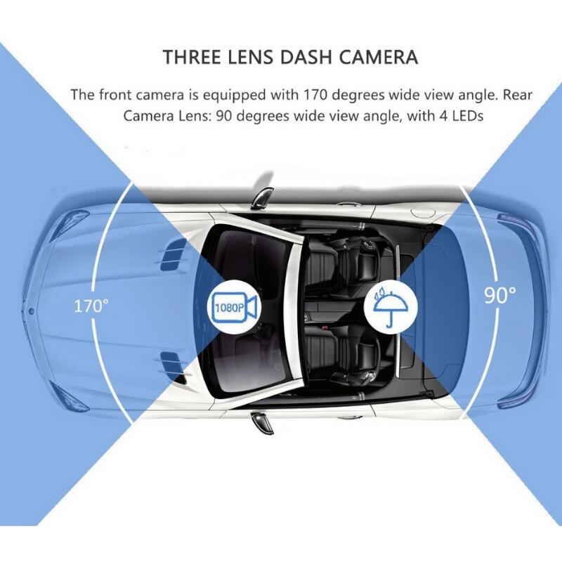 Camera video DVR auto, 3 camere, fata-spate-interior, Full HD 1296P, cu WiFi, ecran 4'', microSD, G-Sensor, montare parbriz sau oglinda, CHS-J-909DVR-3 247Lighting.