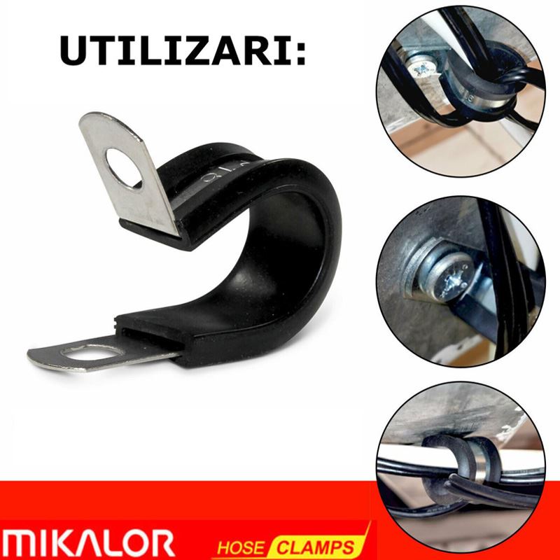 Colierere Mikalor DIN 3016 P-Clips Form D sunt ideale pentru atasarea si retinerea conductelor de cabluri, furtunurilor si tuburilor in constructii, sanitare si in special in aplicatii auto. Sunt utilizate pe scara larga la utilaje agricole, constructii de barci, vehicule comerciale, echipamente de constructii etc.Profilul din cauciuc antivibratie EPDM ajuta la mentinerea ferma a tevilor, furtunurilor si conductelor fara frecare sau deteriorarea zonei de prindere.