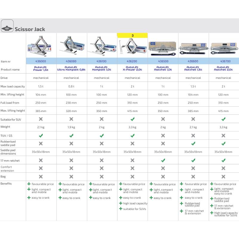 Cric foarfeca, 1T, 25-35cm, cu manivela, TUV, 436.10 Alca