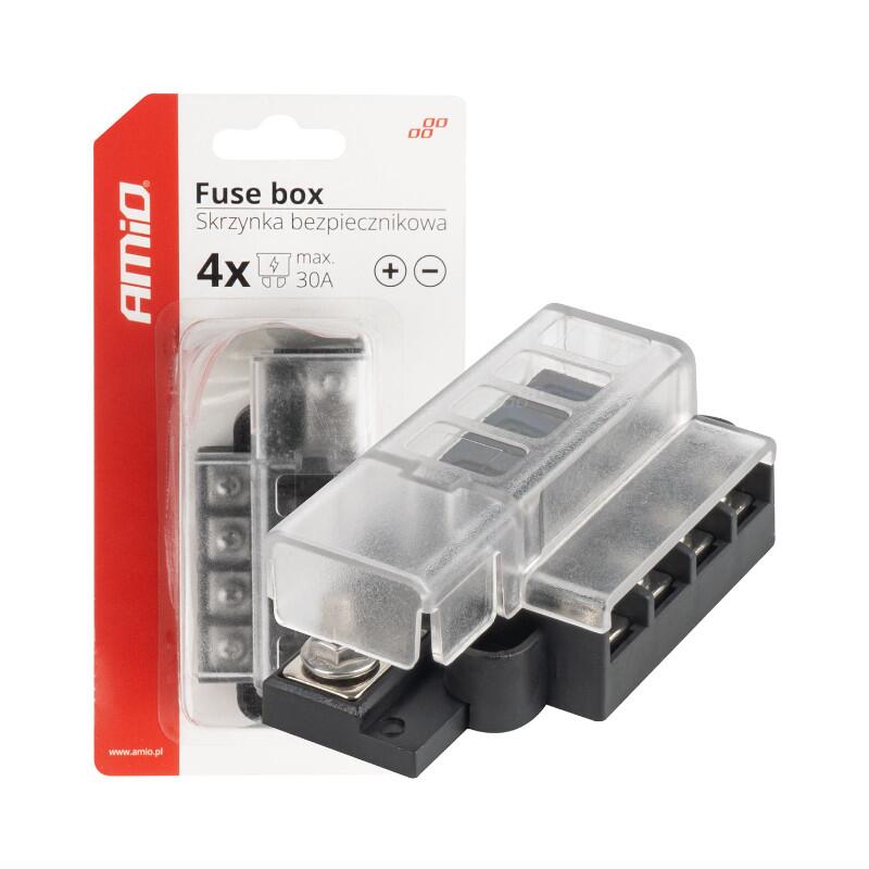 Cutie sigurante plate 4 cai, maximum 30A, cu capac protectie, 03835 Amio.