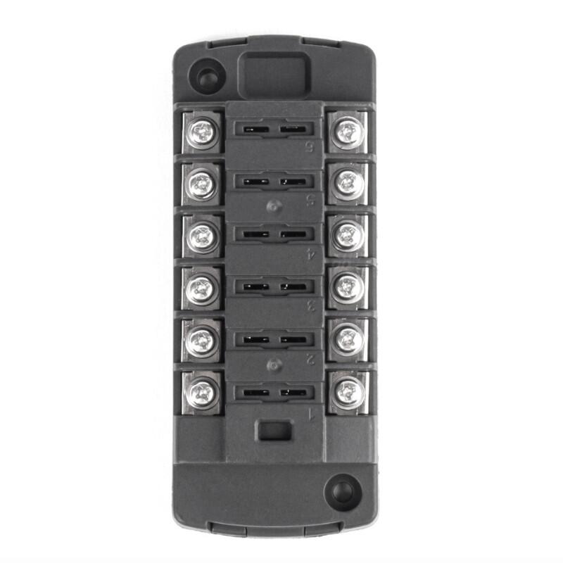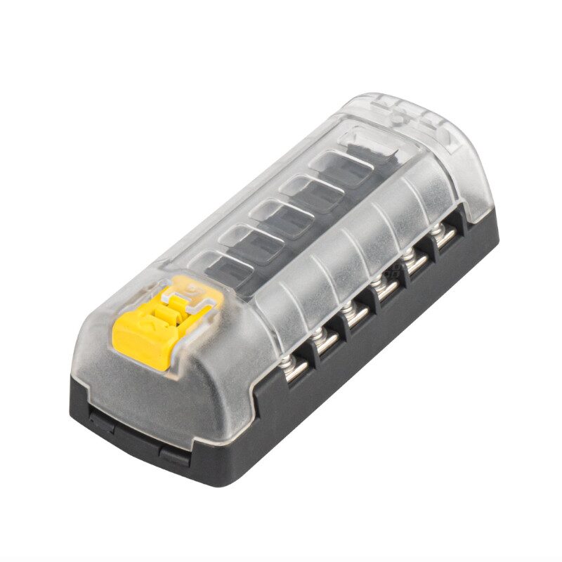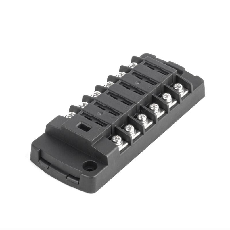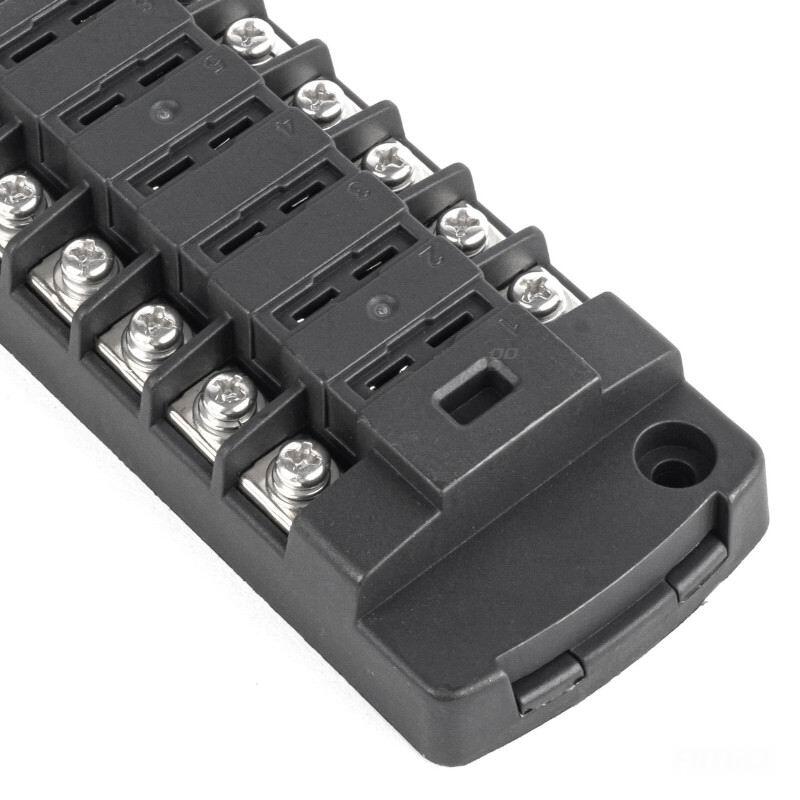 6 prize pentru sigurante: Cutia ofera 6 prize pentru a gestiona eficient circuitele electrice mai mici, ideale pentru aplicatii in care spatiul este limitat.
