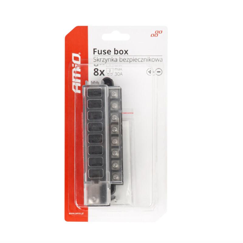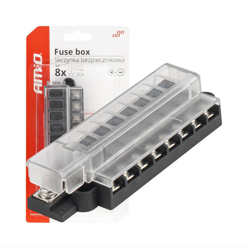 Cutie sigurante plate 8 cai, maximum 30A, cu capac protectie, 03837 Amio.