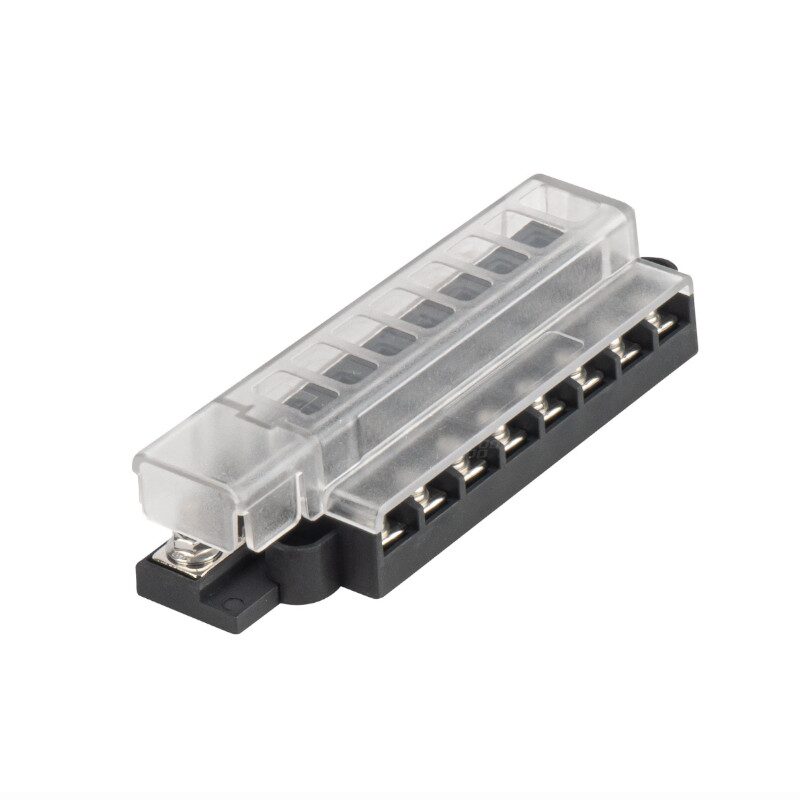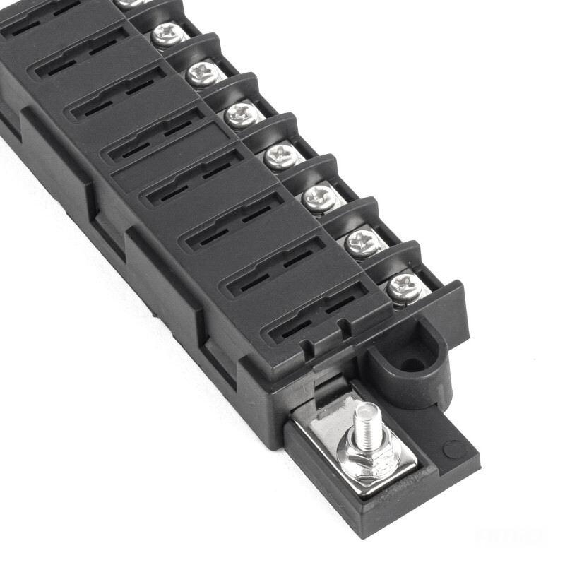 8 prize pentru sigurante: Cutia ofera 8 prize pentru a gestiona eficient circuitele electrice mai mici, ideale pentru aplicatii in care spatiul este limitat.