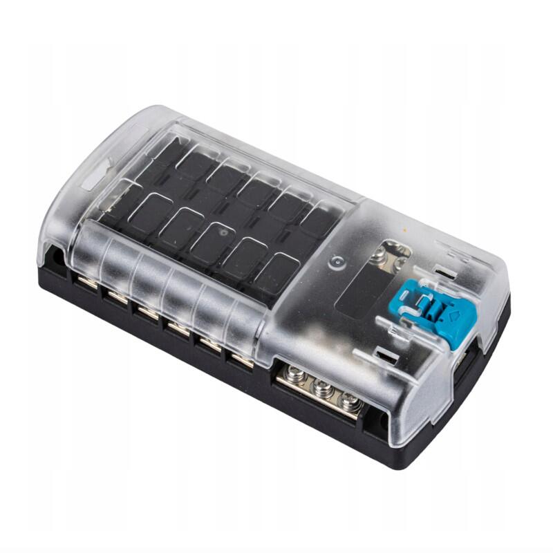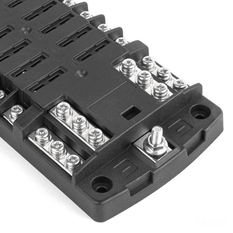 12 prize pentru sigurante: O cutie echipata cu 12 prize, care permite gestionarea usoara si clara a mai multor circuite simultan.