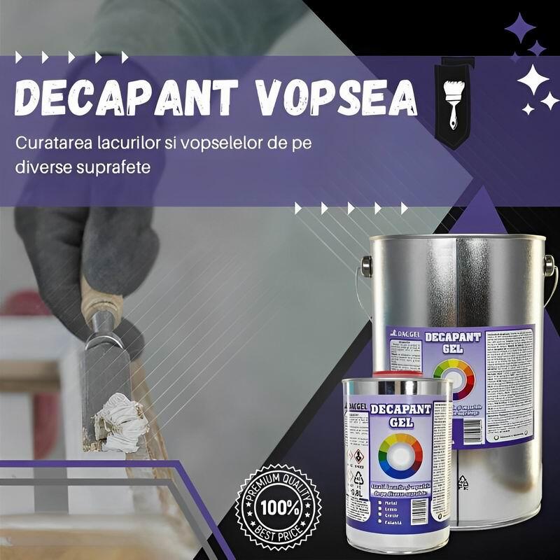 OBS: Decapantul Vopsea Gel Dacgel este formulat pentru a acționa eficient pe vopsele comune, precum cele alchidice, acrilice și pe bază de clorcauciuc.Pentru tipurile de vopsea extrem de dure, cum sunt cele electrostatice sau anumite vopsele industriale/auto vechi, se impun de obicei soluții mult mai agresive, utilizate preponderent de profesioniști în medii controlate, sau metode mecanice (sablare, șlefuire).