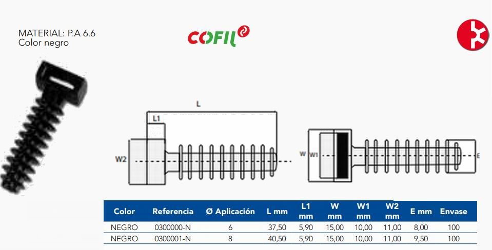 Diblu fixare coliere plastic fi6 x37.5mm, 100bucati, Cofil 0300000N