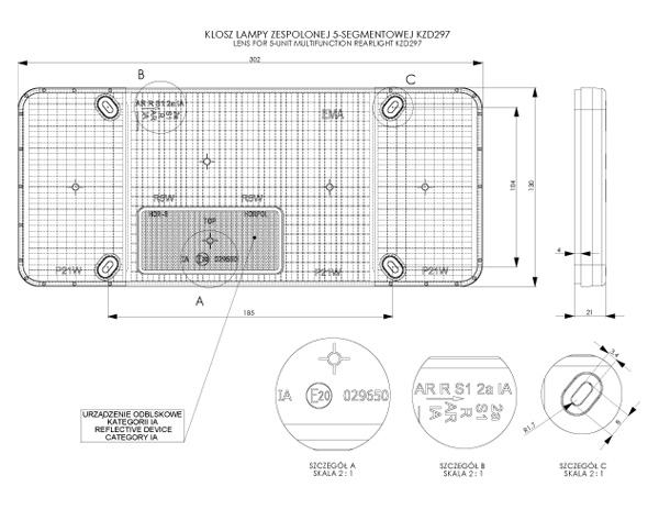 Dispersor pentru lampa spate cu 5 functii de parte dreapta cu functia de mers inapoi