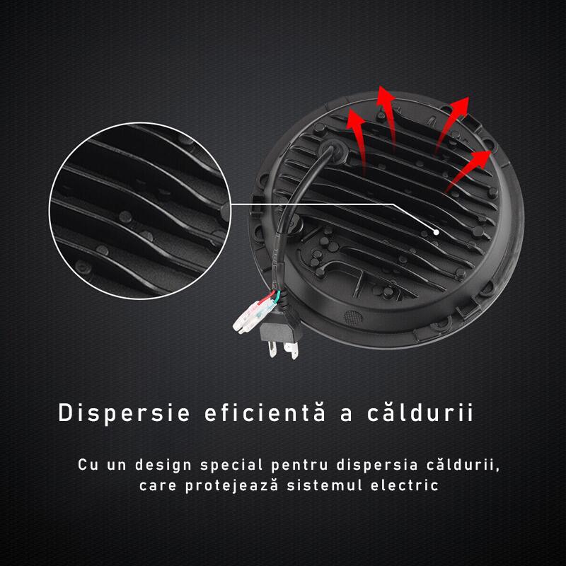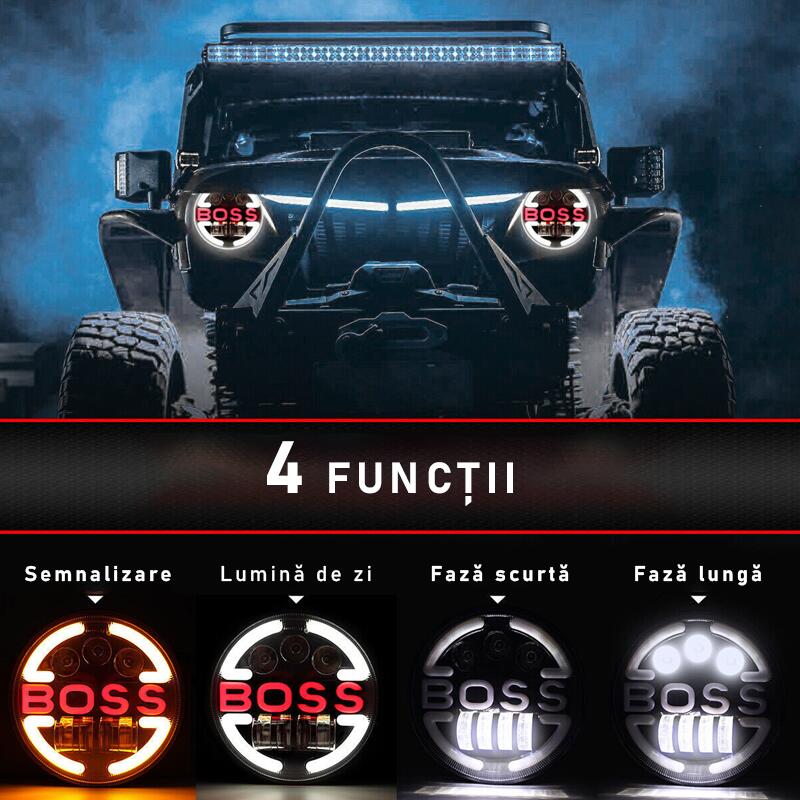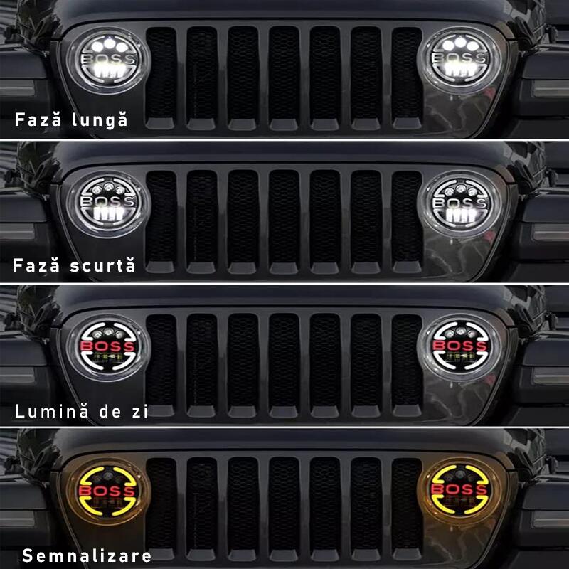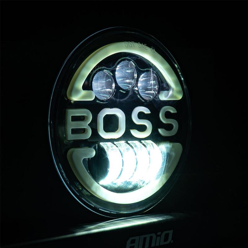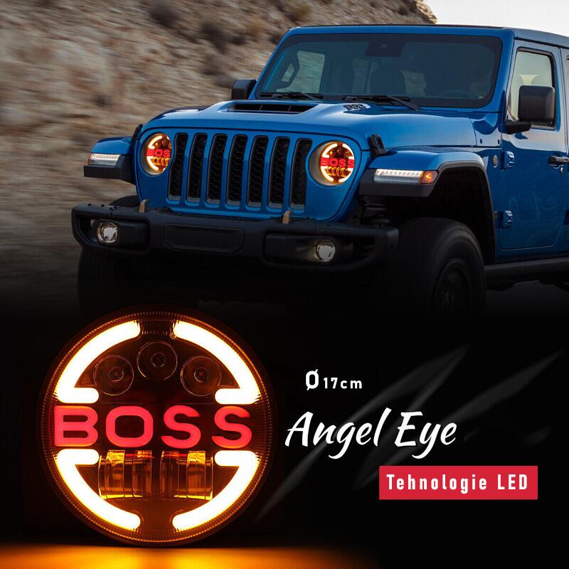 Far fi17.5cm (7") cu 2 faze, Hi-Lo, DRL, BOSS, 12v, pentru Jeep si moto, 03625 Amio.