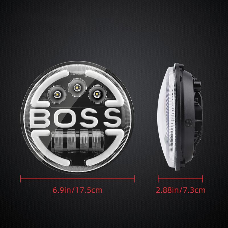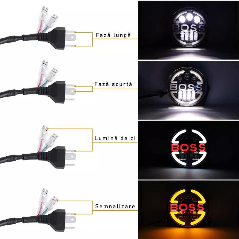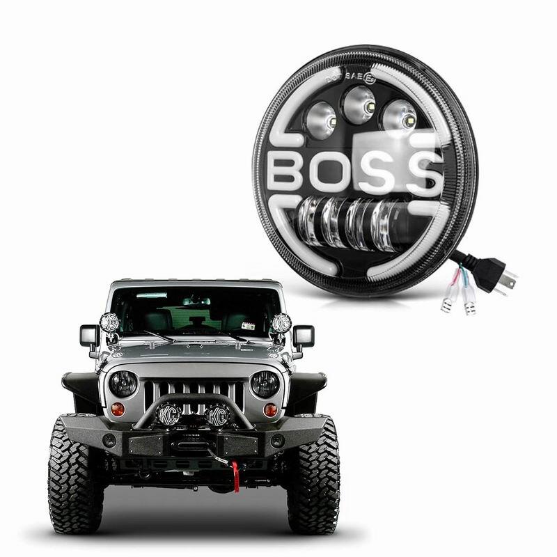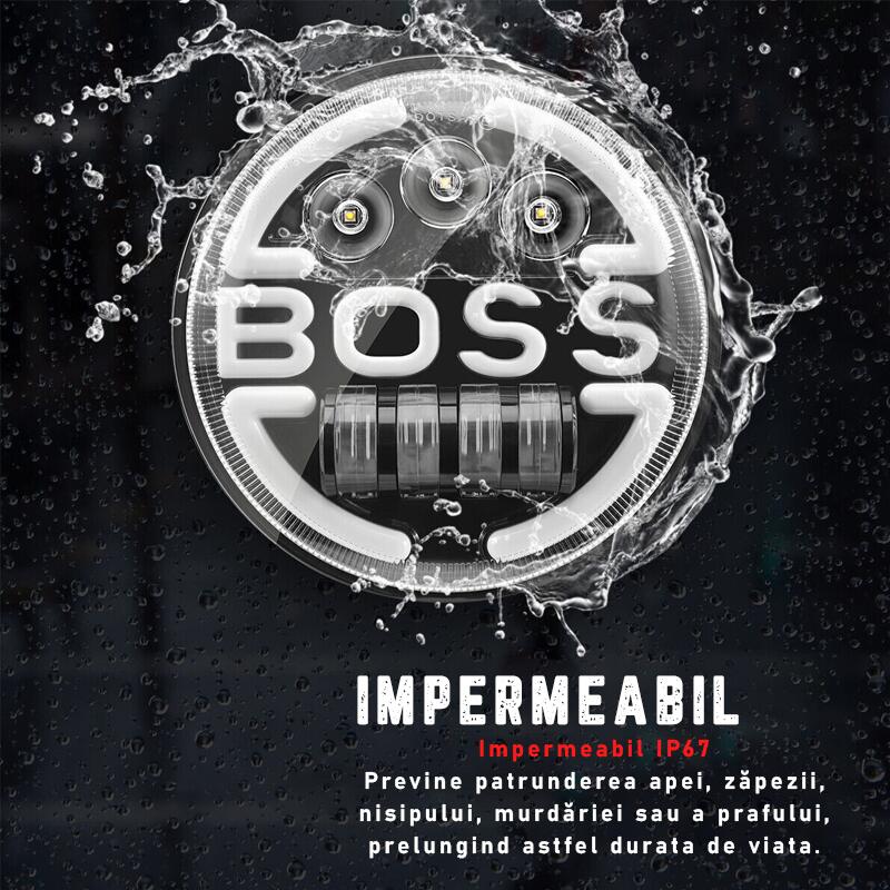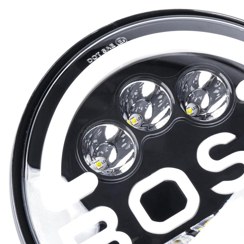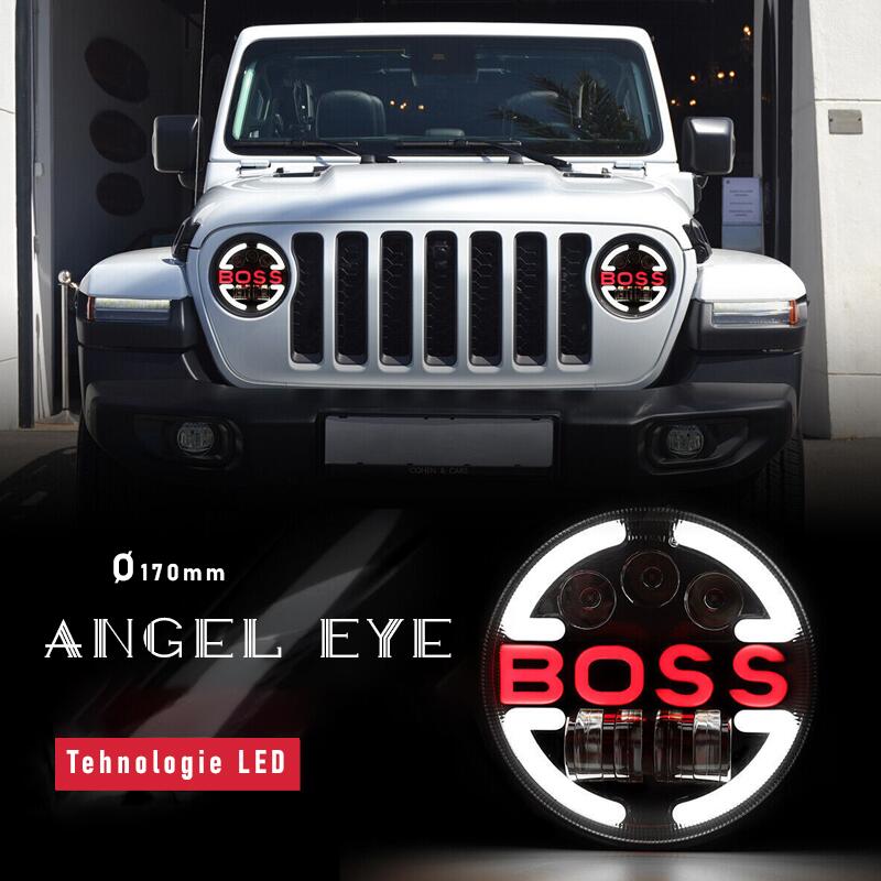 Far fi17.5cm (7") cu 2 faze, Hi-Lo, DRL, BOSS, 12v, pentru Jeep si moto, 03625 Amio.