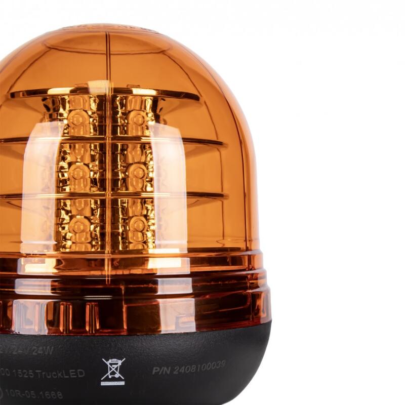 Girofar LED profesional TruckLed LW0028-ALR-2 cu 18 LED-uri x 3W și 3 oglinzi reflectorizante, dimensiuni h 170 x fi 128mm, prindere duală magnet+ventuză, funcționare 12V/24V între -30°C și +50°C. Certificat ECE R10 + R65, compatibilitate electromagnetică EMC, protecție IP65 pentru utilizare profesională pe drumuri publice.