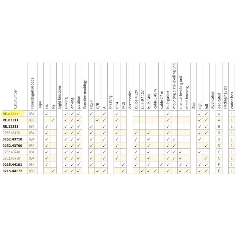 -Intensitatea luminii la echiparea cu bec H4/12V 60/55W este de maxim 60 lucsi pana la 25m;