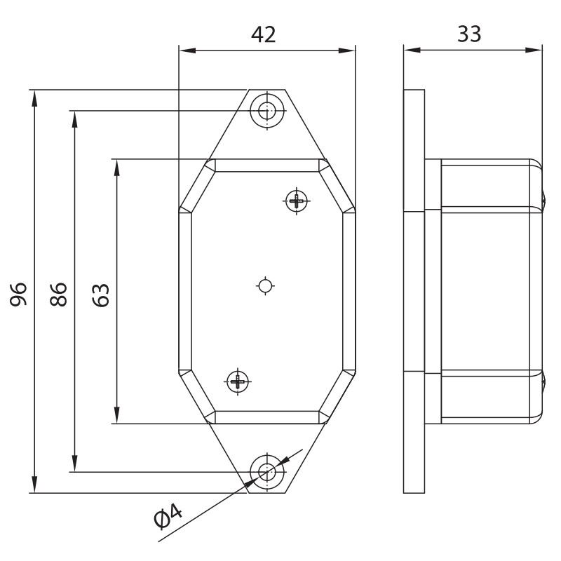 Suport de prindere(cu urechi) de 96mm din plastic cu doua gauri de fi.4mm.