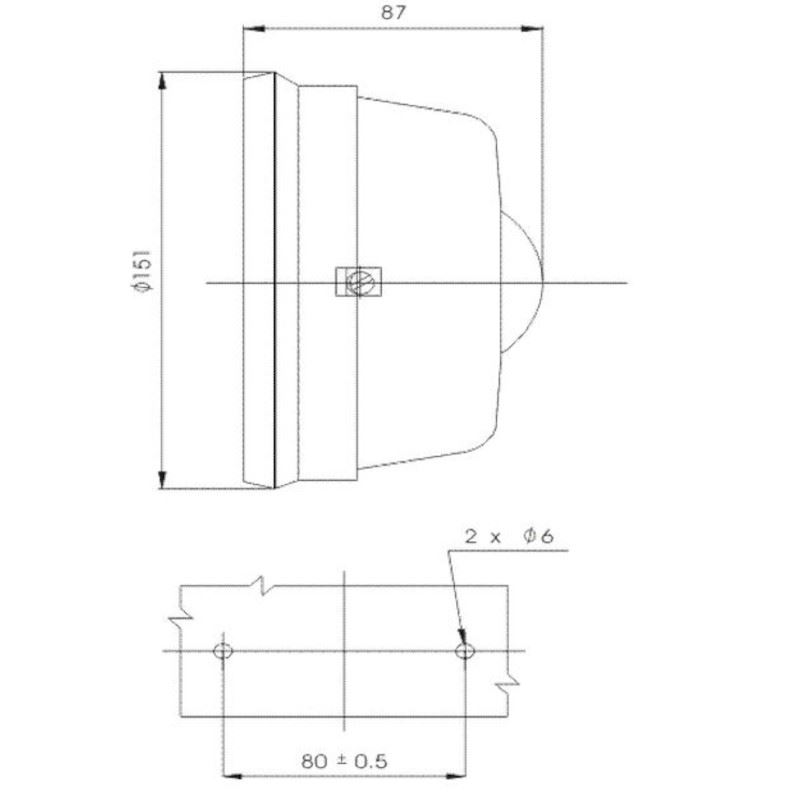 Prinderea lampii cu doua suruburi M6 cu distanta intre ele de 80mm.