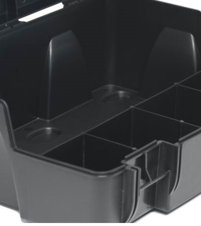 Acest sertar are compartimente detașabile pentru piese mici și accesorii și care odată îndepărtate, oferă un spațiu mai mare pentru scule electrice și încărcător. Acest organizator are un design unic, rezistent la impact, care blochează toate compartimentele în loc, cu vizibilitate deplină pentru un acces mai rapid.