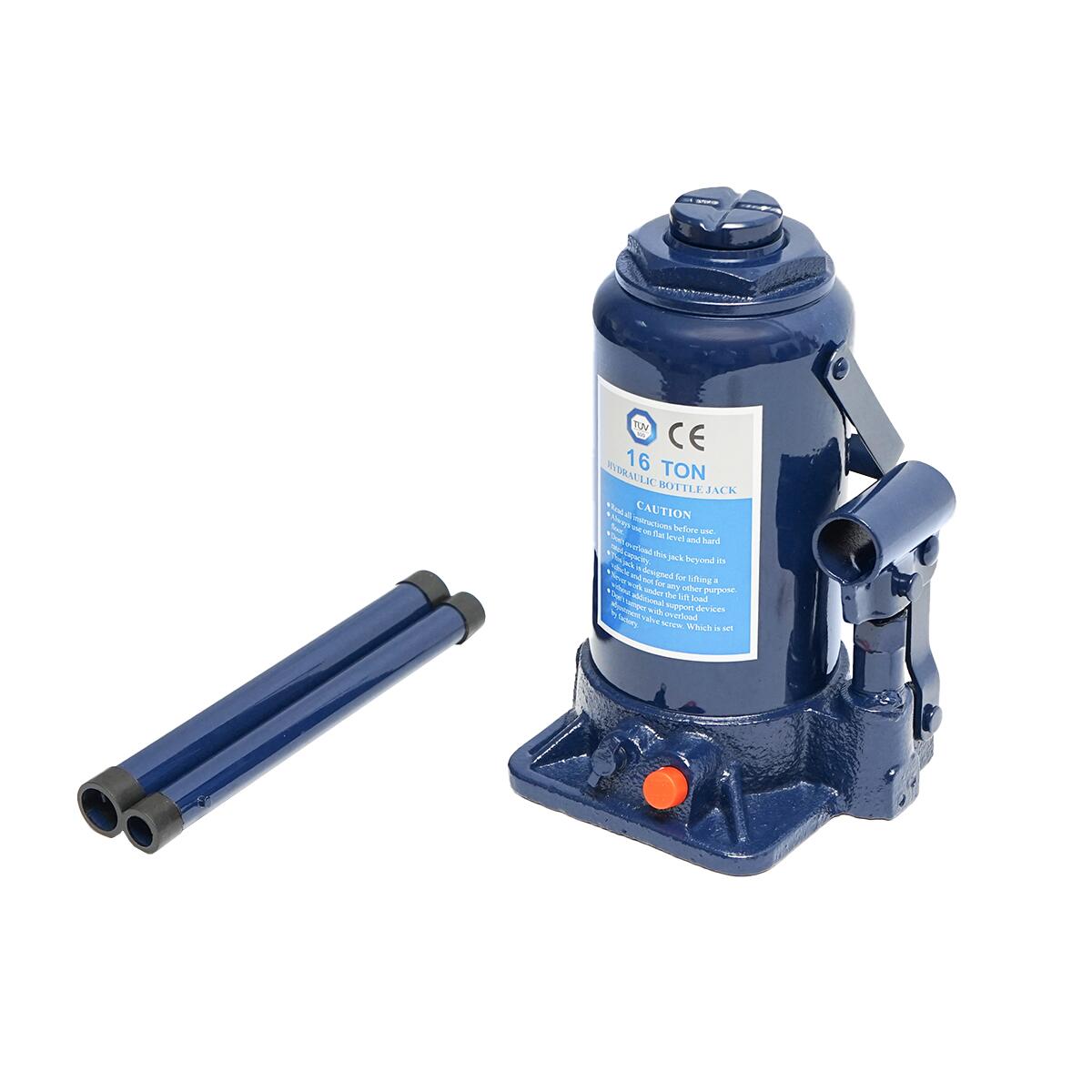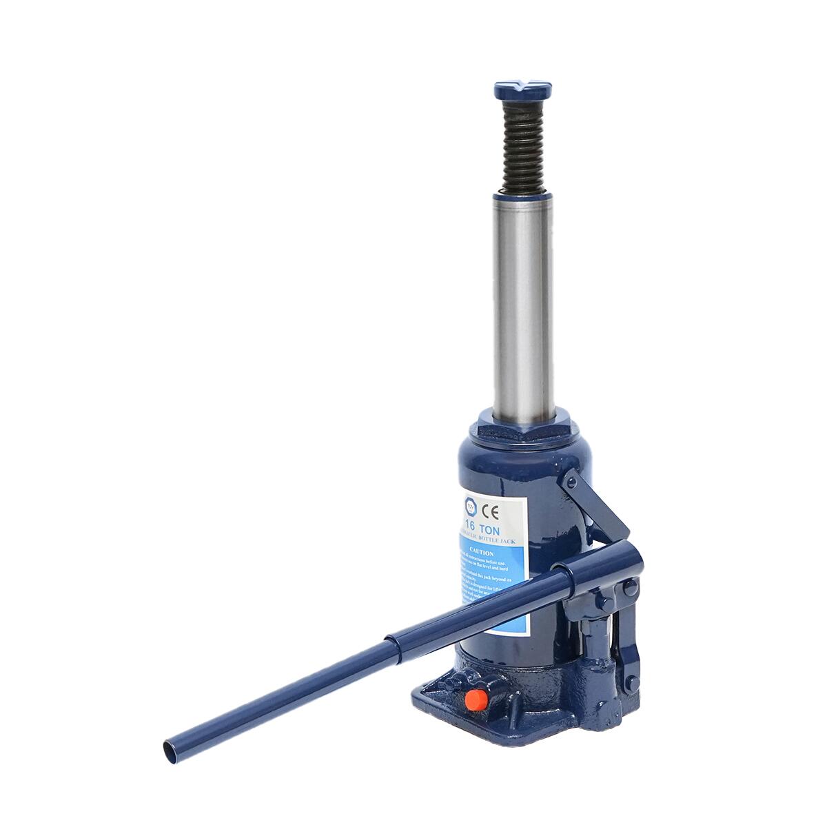 Cric hidraulic profesional, tip sticlă (bottle jack), cu capacitate de ridicare de 16 tone, potrivit pentru utilizare în service-uri auto, transporturi, agricultură sau uz personal.Construcția solidă, din oțel rezistent, și supapa de siguranță integrată asigură o ridicare controlată și sigură.