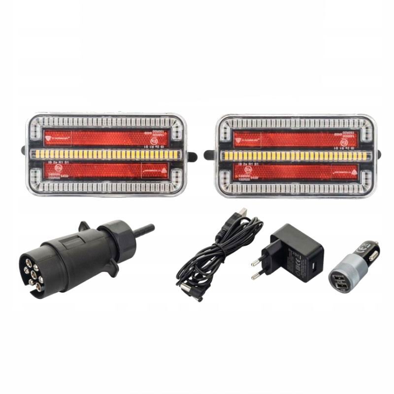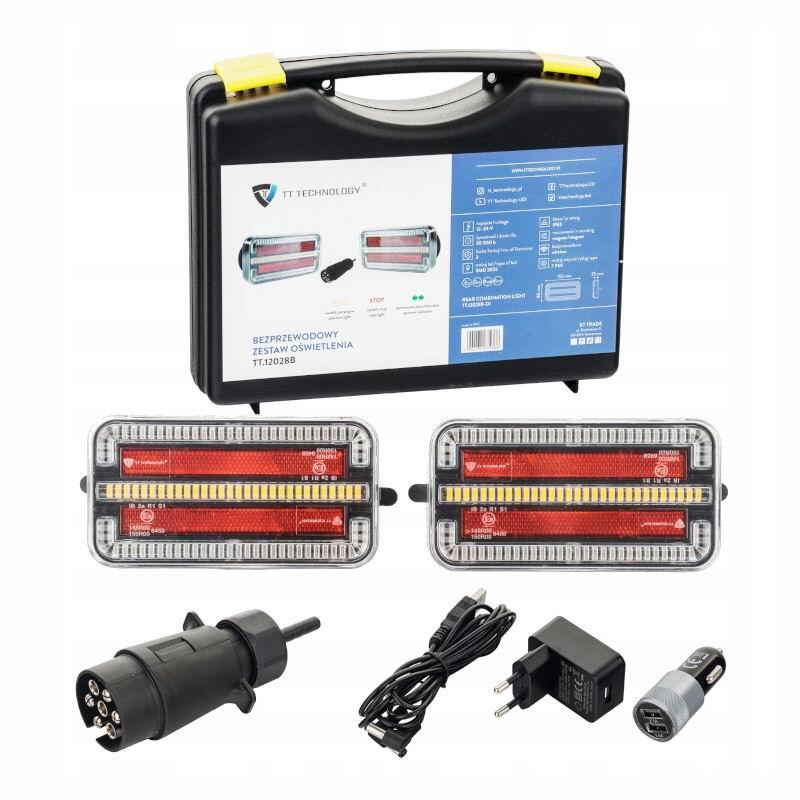 Kit lampi remorca 155x80, LED, cu semnalizare dinamica, cu magnet, wireless, fisa 7 pini, TT.12028B-DI.