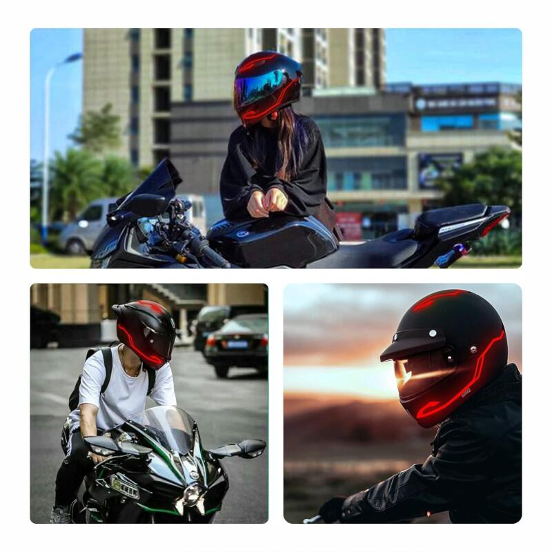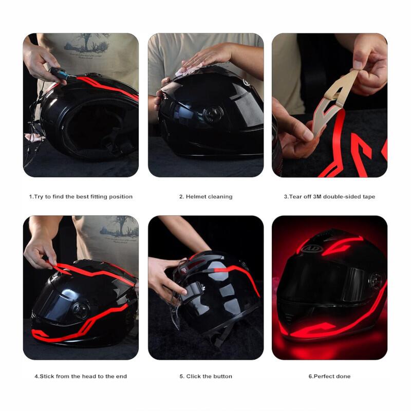 Kit lumini banda LED pentru casca moto, rosu, 3 moduri de iluminare, 4 bucati, JUQ02-R