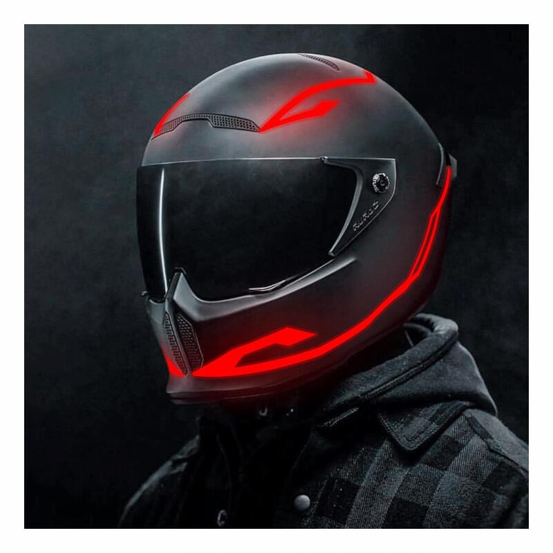 Kit lumini banda LED pentru casca moto, rosu, 3 moduri de iluminare, 4 bucati, JUQ02-R.