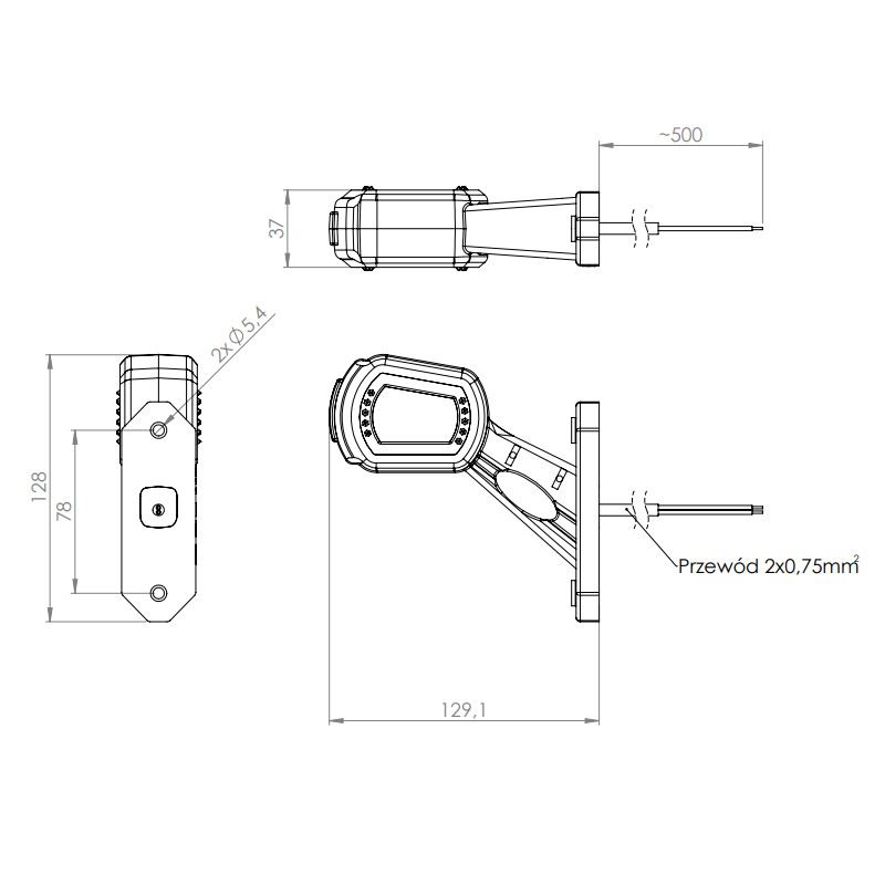 Lampa de contur a gabaritului, LED, oblic 45 grade, dreapta, HOR101, LDCC 2697 Horpol.