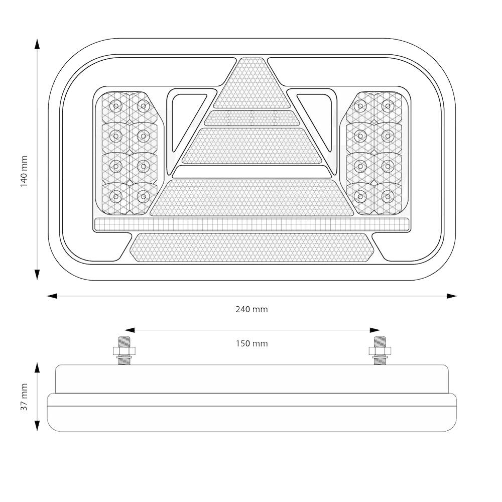 Lampa stop 240x140, LED, 6 functii, ceata, mers inapoi, semnalizare dinamica, dreapta, 02367 Amio