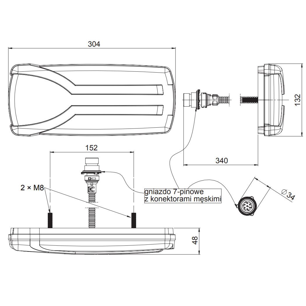 Lampa spate multifunctionala, 7 functii, mufa 7 pini, stanga, Carmen LZD 2304 Horpol.
