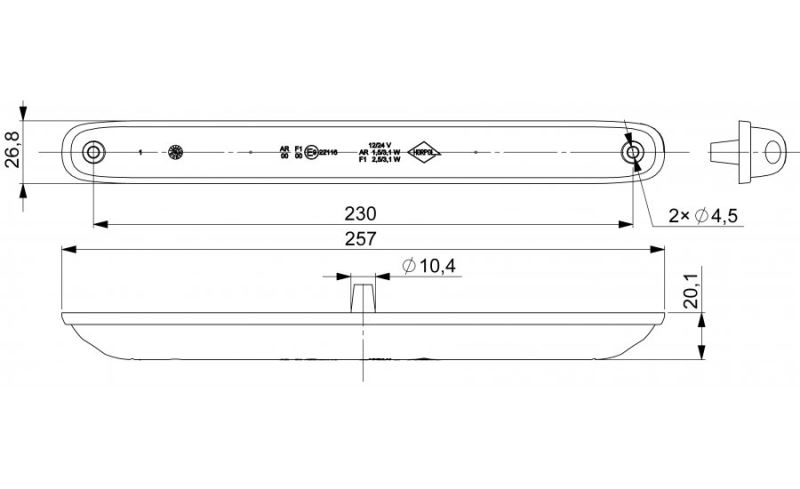 Lampa de ceata spate 12V / 24V - 2,5W / 3,1 W;