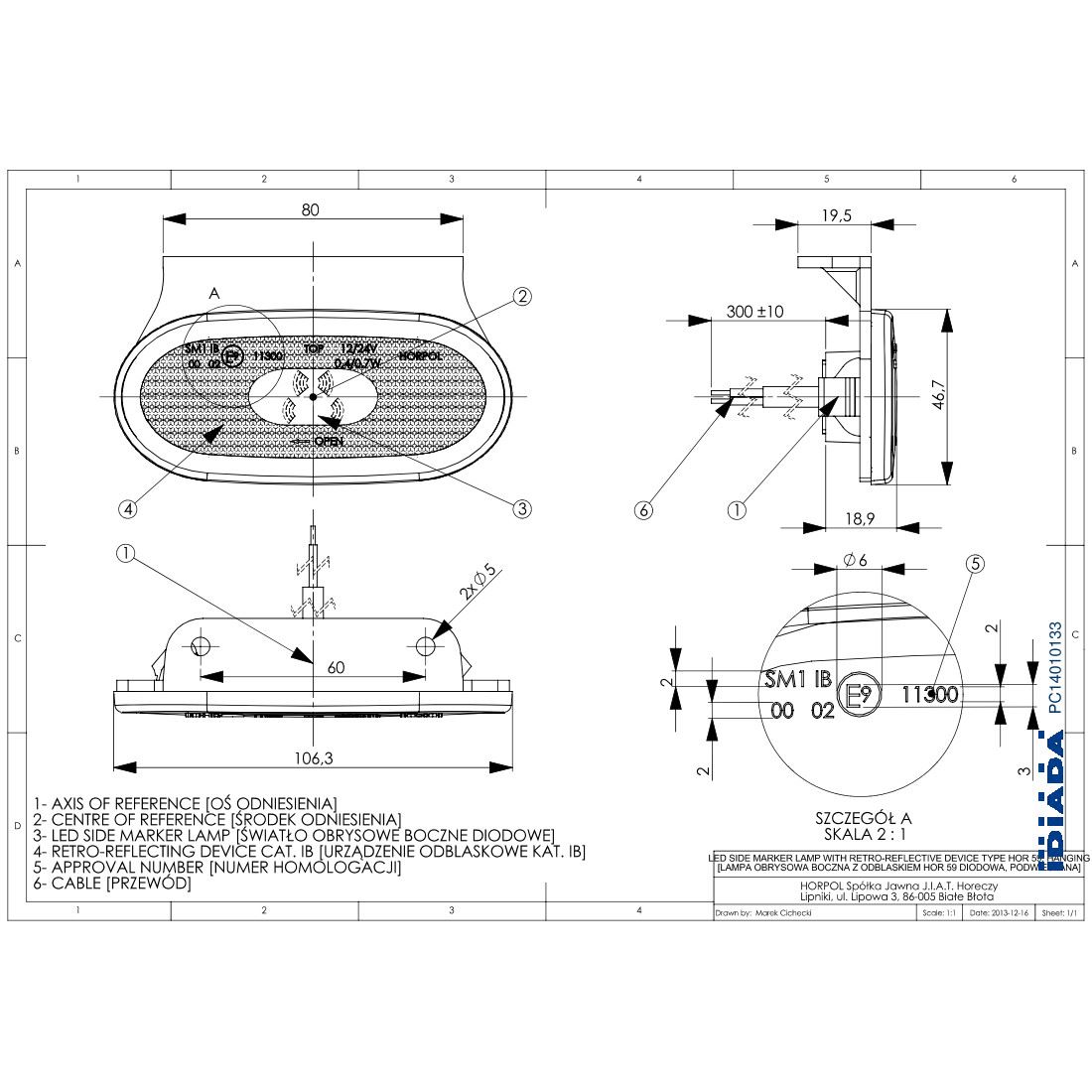 Lampa gabarit 106x47, LED, cu suport, Sprinter / Crafter LD982 Horpol