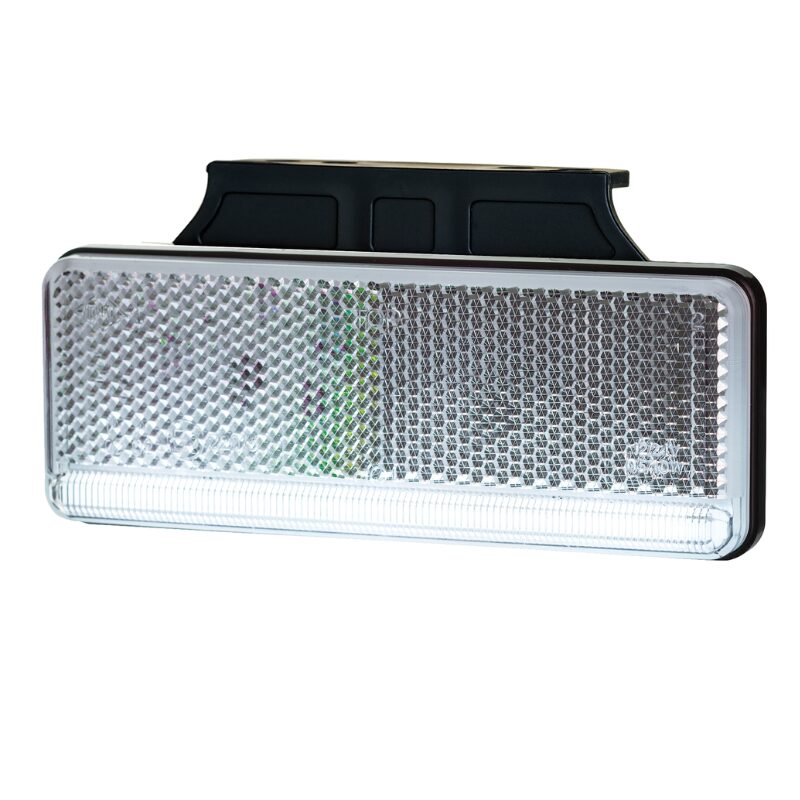 Lampă gabarit LED Horpol LD2509, dimensiuni 113x44mm, lumină albă, tensiune duală 12/24V, protecție IP68 — omologată ECE R91, inclusă cu suport de montaj, compatibilă universal pentru vehicule comerciale, remorci și camioane.