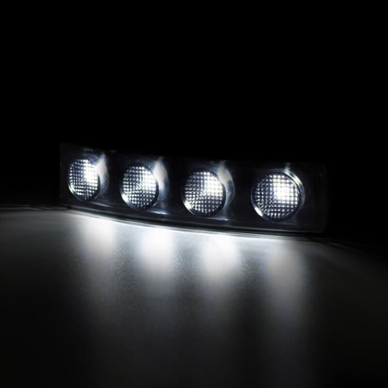 Această lampă este echipată cu 4 LED-uri albe de înaltă eficiență, care asigură o lumină clară și constantă. Poate fi montată pe partea stângă sau dreaptă, fiind astfel potrivită pentru aplicații diverse.