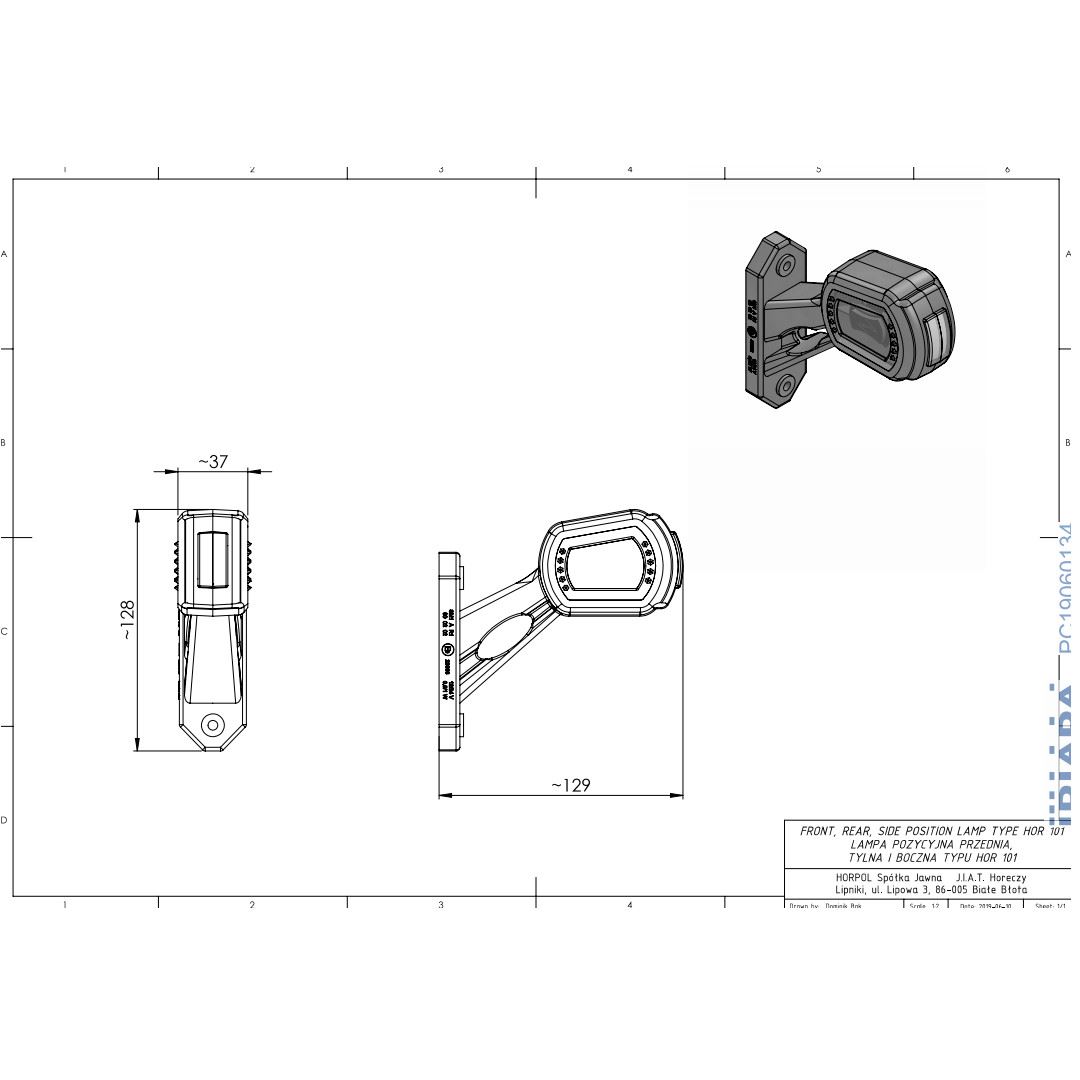 Lampa gabarit brat 129mm, LED, oblica la 45 grade, senzor mers inapoi, stanga, HOR101, LDCC2724 Horpol