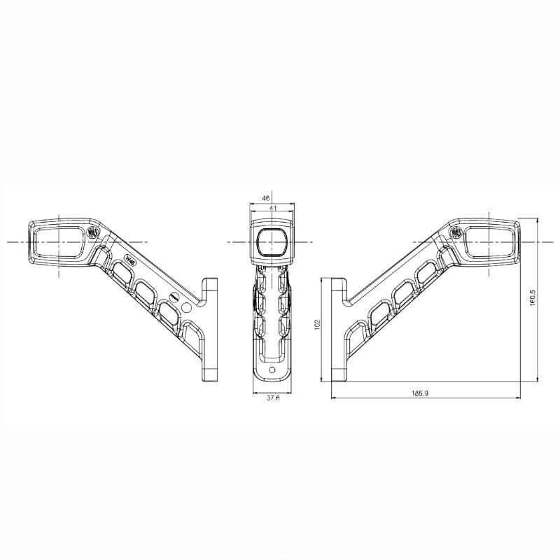 Lampa gabarit cu brat 186mm, cotit la 45°, Led NEON, 3 functii, stanga, W48N LOGO 2049NL Was.