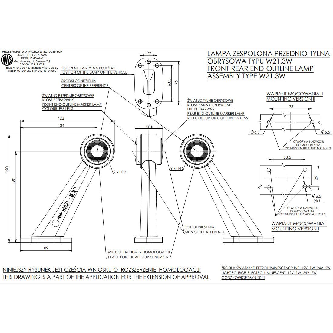 Lampa gabarit cu brat 187mm, oblic 45°, LED, AngelEye, dreapta W21.3W 497BCP WAS