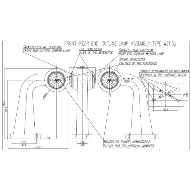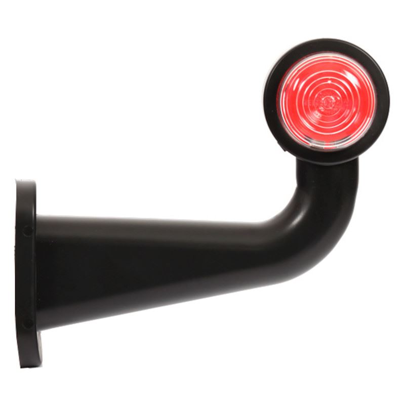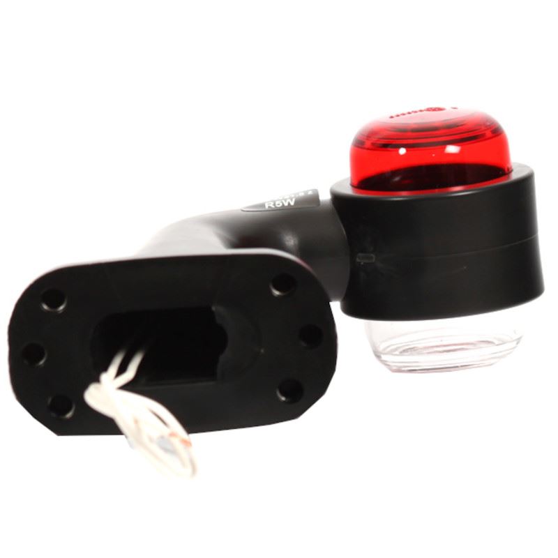 Lampa de contur a gabaritului pentru vehicule Brat de 180mm,cot la 90° Culoare alba si rosie Functioneaza la 12V sau 24V Bec R5W Talpa de prindere cu doua orificii de fi6,5mm din cauciuc Cablu de alim...
