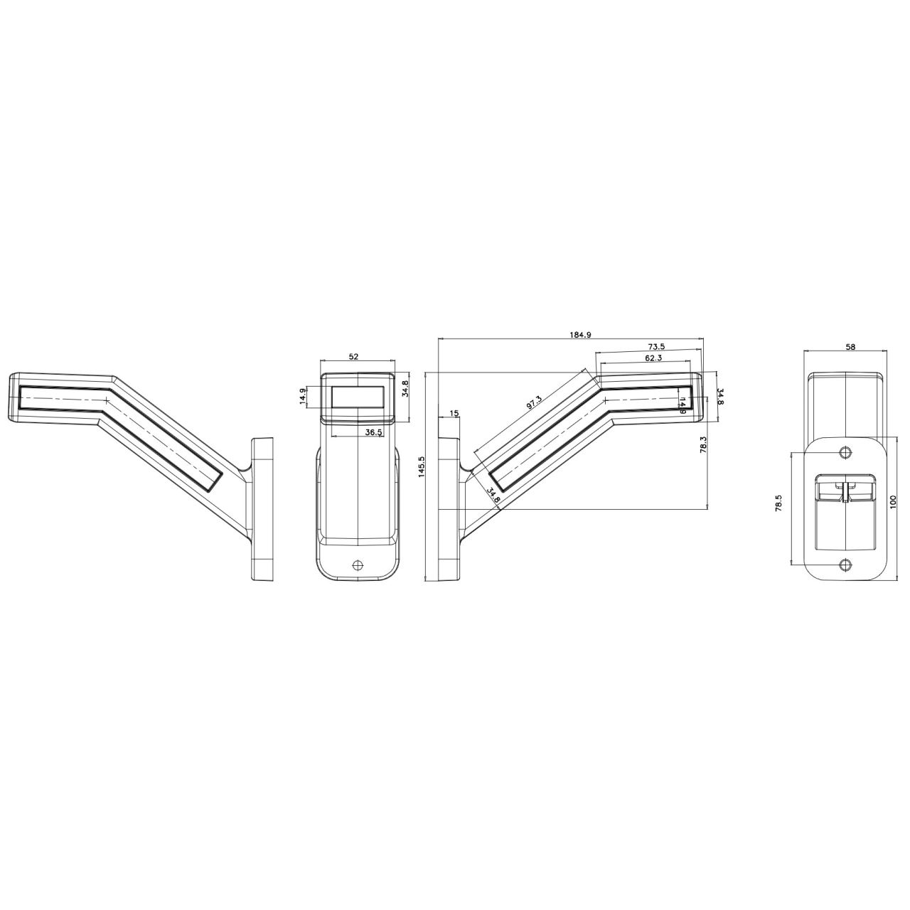 Lampa gabarit cu brat lung 185, oblic 45, 51 LED-uri, 3 functii, dreapta, W168.6 1258P Was.