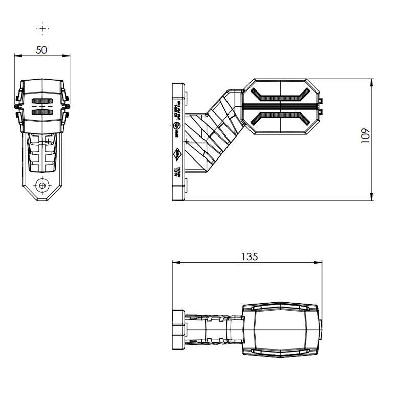 Lampa gabarit cu brat oblic 45°, 135mm, 16LED-uri, 3 functii, stanga, Dragon, Hor134, LD3063 Horpol.