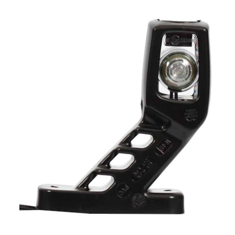 Lampa de contur a gabaritului pentru vehicule Pentru partea stanga Brat de 135mm , inclinat la 45° Culoare alba,galbena si rosie Functioneaza de la 12V al 24V Iluminare cu led Talpa de prindere cu dou...