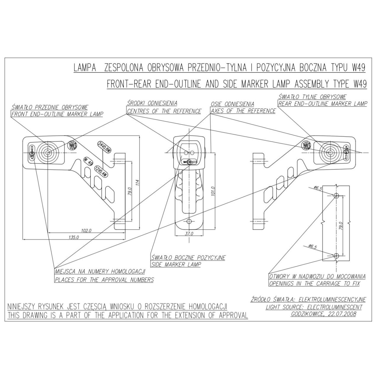 Lampa de contur a gabaritului pentru vehicule W49 241P Was.