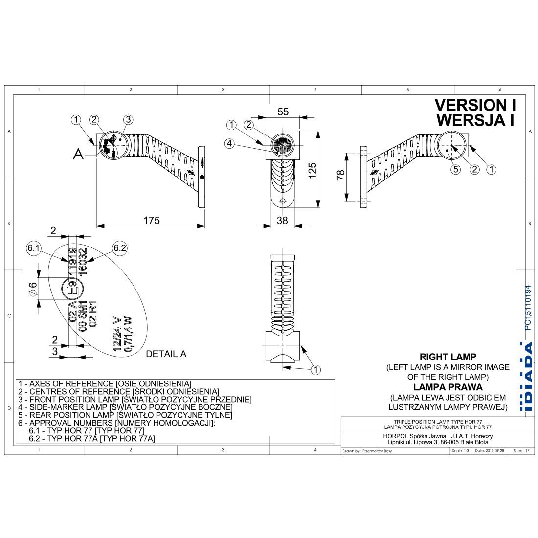 Lampa gabarit cu brat oblic 45°, LED, 3 functii, stanga, LD2031 Horpol.