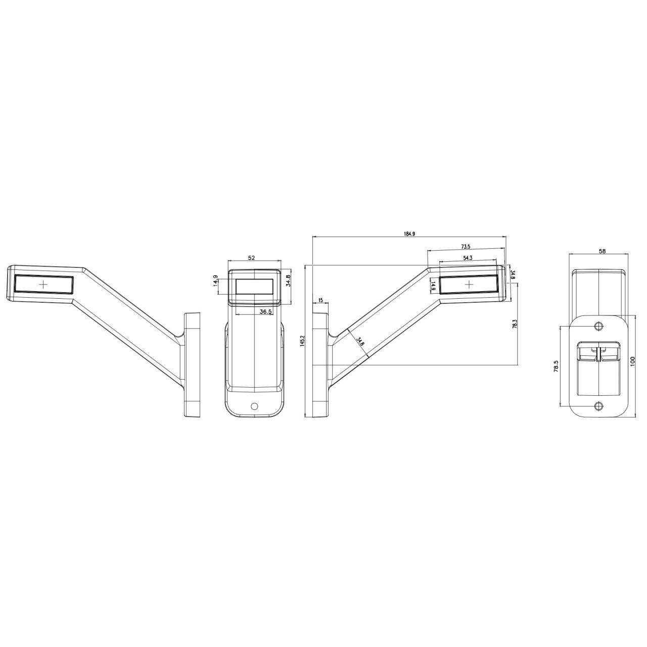 Lampa gabarit cu brat oblic 45°, 185mm, LED, 3 functii, stanga 12-24V, W168.1-1165L Was