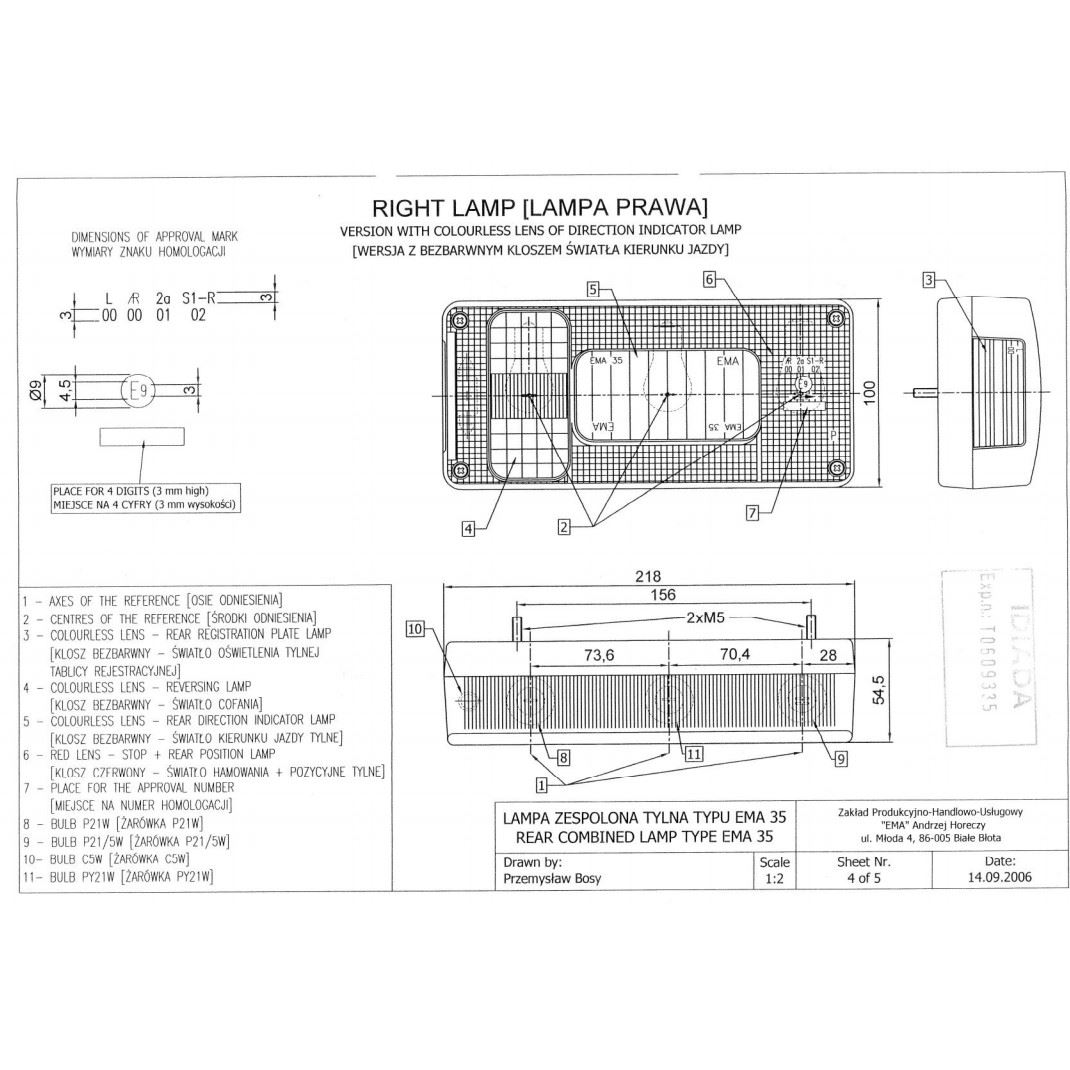 Lampa spate multifunctionala cu 5 functii, mers inapoi, partea dreapta, LZT328 Horpol.