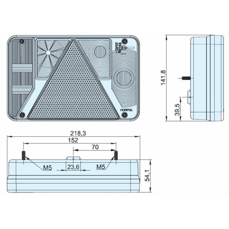 Lampa spate 219x142, 6 functii, cu triunghi si mers inapoi, dreapta, LZT 470 Horpol